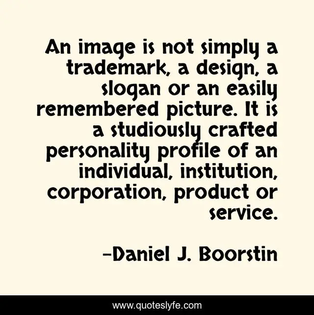"Daniel J. Boorstin Quotes." Quoteslyfe.com, 2025. Fri. 05 Dec. 2025. <https://www.quoteslyfe.com/quote/An-image-is-not-simply-a-trademark-314253>.