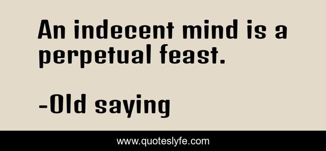 "Old saying Quotes." Quoteslyfe.com, 2025. Mon. 08 Dec. 2025. <https://www.quoteslyfe.com/quote/An-indecent-mind-is-a-perpetual-feast-274523>.