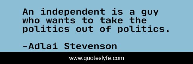 This page presents the quote "An independent is a guy who wants to take the politics out of politics.". Author of this quote is Adlai Stevenson. .