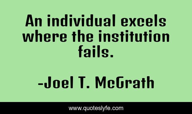 "Joel T. McGrath Quotes." Quoteslyfe.com, 2025. Fri. 05 Dec. 2025. <https://www.quoteslyfe.com/quote/An-individual-excels-where-the-institution-fails-254154>.