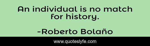 This page presents the quote "An individual is no match for history.". Author of this quote is Roberto Bolaño. .