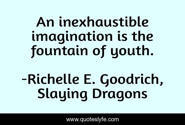 This page presents the quote "An inexhaustible imagination is the fountain of youth.". Author of this quote is Richelle E. Goodrich, Slaying Dragons. This quote is about imagining, richelle-e-goodrich, fountain-of-youth, imagination, richelle, imagine, richelle-goodrich, what-if,.