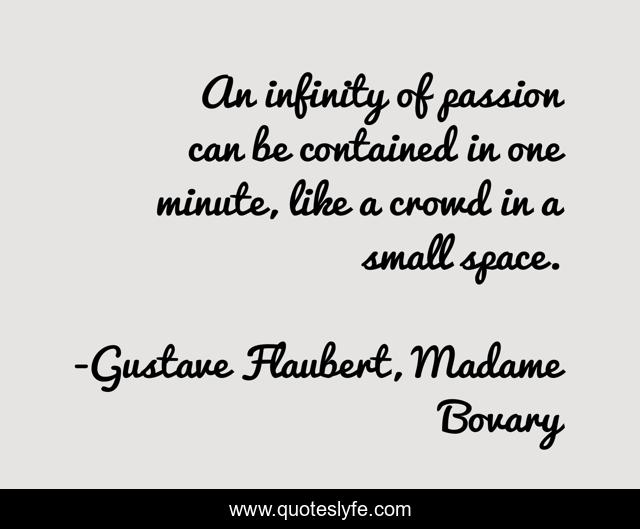 This page presents the quote "An infinity of passion can be contained in one minute, like a crowd in a small space.". Author of this quote is Gustave Flaubert, Madame Bovary. This quote is about infinity, passion, time,.