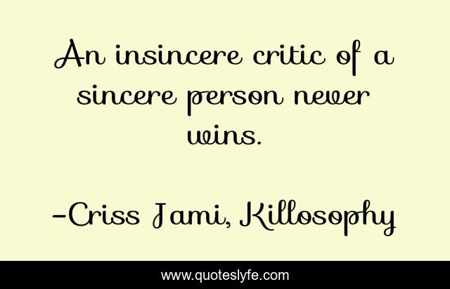 "Criss Jami, Killosophy Quotes." Quoteslyfe.com, 2025. Sun. 07 Dec. 2025. <https://www.quoteslyfe.com/quote/An-insincere-critic-of-a-sincere-person-226110>.