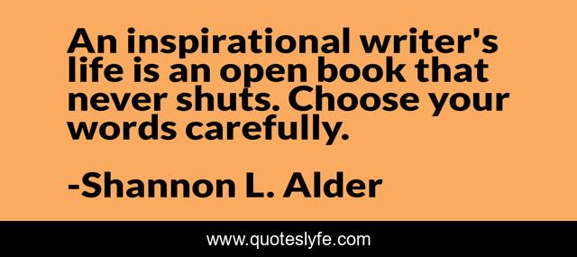 This page presents the quote "An inspirational writer's life is an open book that never shuts. Choose your words carefully.". Author of this quote is Shannon L. Alder. This quote is about writer, author, writing,.