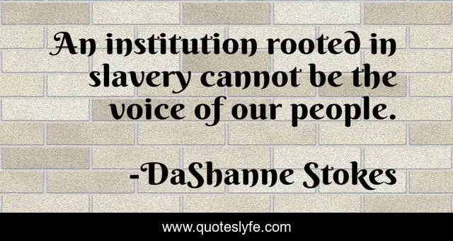 "DaShanne Stokes Quotes." Quoteslyfe.com, 2025. Sun. 07 Dec. 2025. <https://www.quoteslyfe.com/quote/An-institution-rooted-in-slavery-cannot-be-191701>.
