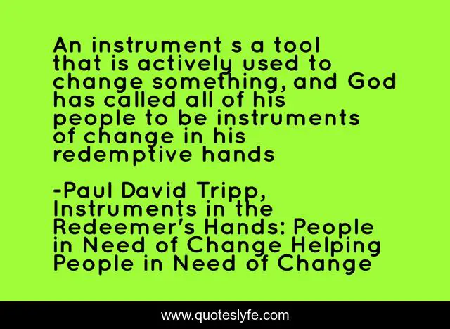 This page presents the quote "An instrument s a tool that is actively used to change something, and God has called all of his people to be instruments of change in his redemptive hands". Author of this quote is Paul David Tripp, Instruments in the Redeemer's Hands: People in Need of Change Helping People in Need of Change. .