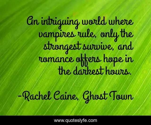 "Rachel Caine, Ghost Town Quotes." Quoteslyfe.com, 2025. Sat. 06 Dec. 2025. <https://www.quoteslyfe.com/quote/An-intriguing-world-where-vampires-rule-only-100483>.