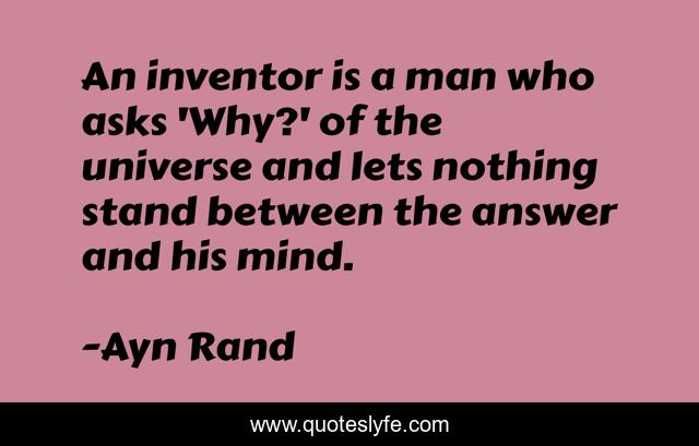 This page presents the quote "An inventor is a man who asks 'Why?' of the universe and lets nothing stand between the answer and his mind.". Author of this quote is Ayn Rand. .