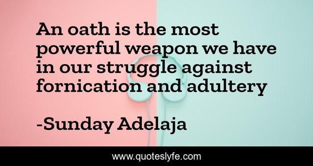 This page presents the quote "An oath is the most powerful weapon we have in our struggle against fornication and adultery". Author of this quote is Sunday Adelaja. This quote is about weapon, oath, struggle,.