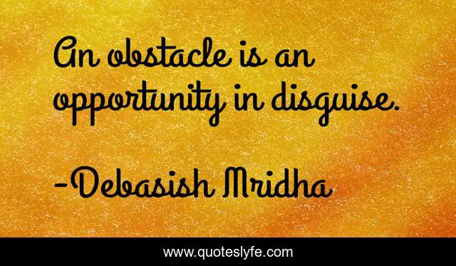 "Debasish Mridha Quotes." Quoteslyfe.com, 2025. Fri. 05 Dec. 2025. <https://www.quoteslyfe.com/quote/An-obstacle-is-an-opportunity-in-disguise-135716>.