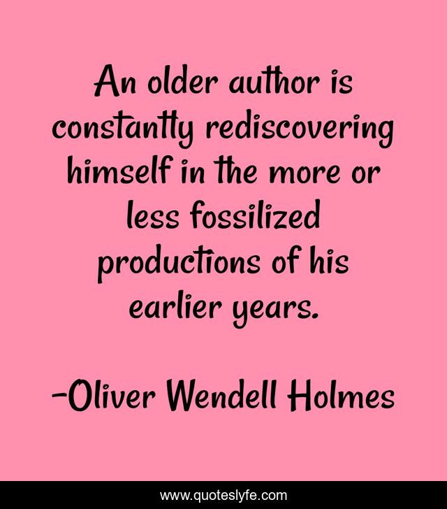 This page presents the quote "An older author is constantly rediscovering himself in the more or less fossilized productions of his earlier years.". Author of this quote is Oliver Wendell Holmes. This quote is about aging, age, old,.