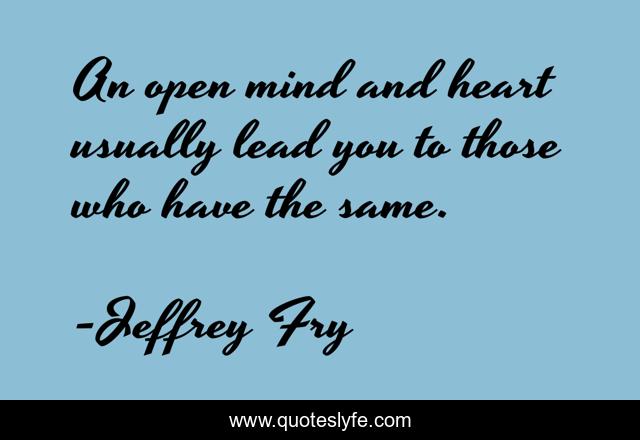 This page presents the quote "An open mind and heart usually lead you to those who have the same.". Author of this quote is Jeffrey Fry. This quote is about heart, open-mind, lead, same,.