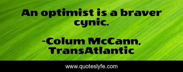 This page presents the quote "An optimist is a braver cynic.". Author of this quote is Colum McCann, TransAtlantic. .