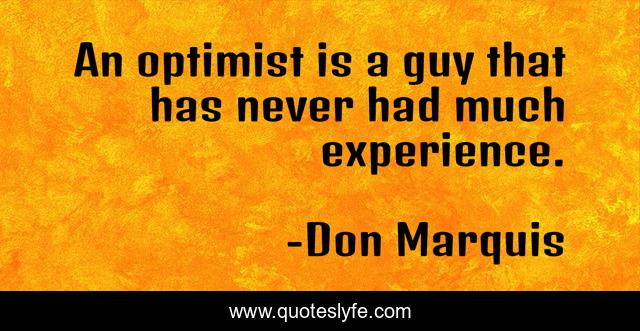 This page presents the quote "An optimist is a guy that has never had much experience.". Author of this quote is Don Marquis. This quote is about pessimism, optimism,.