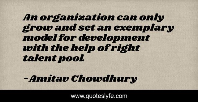 This page presents the quote "An organization can only grow and set an exemplary model for development with the help of right talent pool.". Author of this quote is Amitav Chowdhury. This quote is about development, hr, leadership, talent, success,.