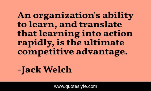 This page presents the quote "An organization's ability to learn, and translate that learning into action rapidly, is the ultimate competitive advantage.". Author of this quote is Jack Welch. This quote is about action, learning,.