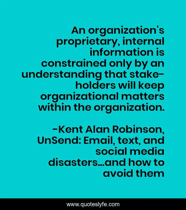 "Kent Alan Robinson, UnSend: Email, text, and social media disasters...and how to avoid them Quotes." Quoteslyfe.com, 2025. Sat. 06 Dec. 2025. <https://www.quoteslyfe.com/quote/An-organization-s-proprietary-internal-information-is-64454>.