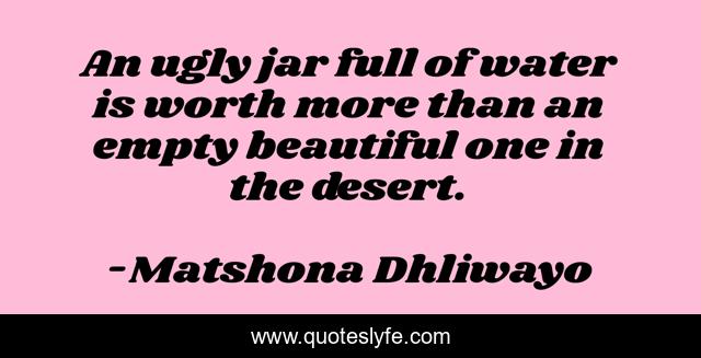 "Matshona Dhliwayo Quotes." Quoteslyfe.com, 2025. Sat. 06 Dec. 2025. <https://www.quoteslyfe.com/quote/An-ugly-jar-full-of-water-is-97990>.