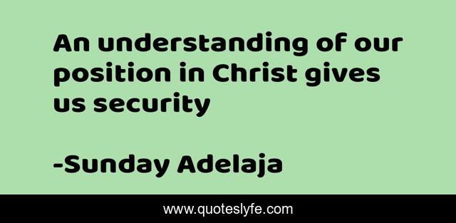This page presents the quote "An understanding of our position in Christ gives us security". Author of this quote is Sunday Adelaja. This quote is about position, security, understanding,.