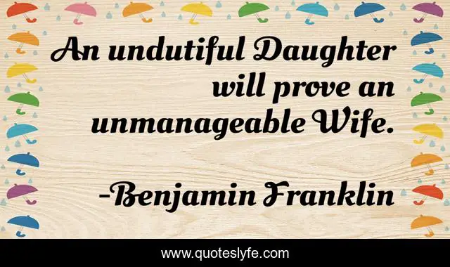 "Benjamin Franklin Quotes." Quoteslyfe.com, 2025. Sat. 06 Dec. 2025. <https://www.quoteslyfe.com/quote/An-undutiful-Daughter-will-prove-an-unmanageable-278660>.