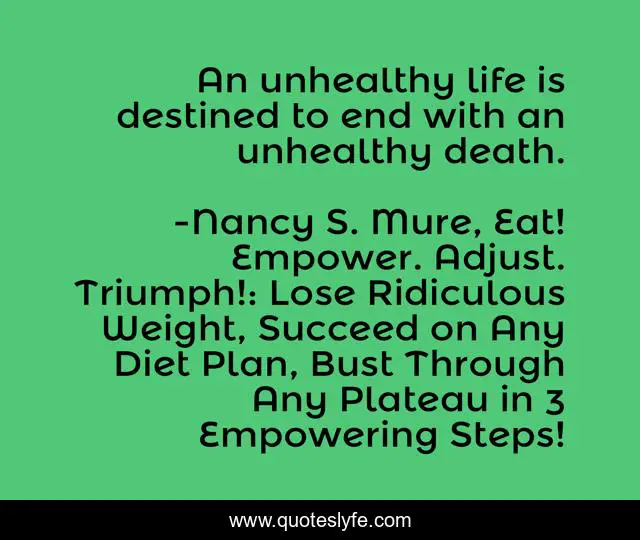 "Nancy S. Mure, Eat! Empower. Adjust. Triumph!: Lose Ridiculous Weight, Succeed on Any Diet Plan, Bust Through Any Plateau in 3 Empowering Steps! Quotes." Quoteslyfe.com, 2025. Fri. 05 Dec. 2025. <https://www.quoteslyfe.com/quote/An-unhealthy-life-is-destined-to-end-176921>.