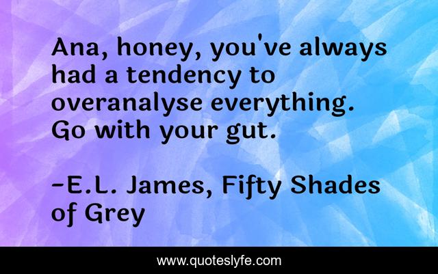 This page presents the quote "Ana, honey, you've always had a tendency to overanalyse everything. Go with your gut.". Author of this quote is E.L. James, Fifty Shades of Grey. This quote is about over-thinking, believe, 50-shades, 50-shades-of-grey,.