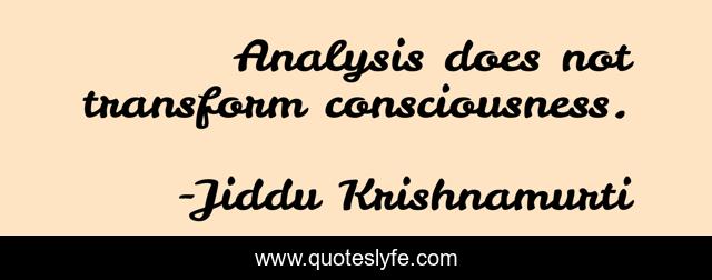 "Jiddu Krishnamurti Quotes." Quoteslyfe.com, 2025. Fri. 05 Dec. 2025. <https://www.quoteslyfe.com/quote/Analysis-does-not-transform-consciousness-222825>.