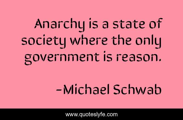 This page presents the quote "Anarchy is a state of society where the only government is reason.". Author of this quote is Michael Schwab. This quote is about reason, anarchism, government,.