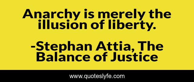 This page presents the quote "Anarchy is merely the illusion of liberty.". Author of this quote is Stephan Attia, The Balance of Justice. .