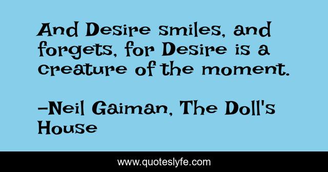 "Neil Gaiman, The Doll's House Quotes." Quoteslyfe.com, 2025. Fri. 05 Dec. 2025. <https://www.quoteslyfe.com/quote/And-Desire-smiles-and-forgets-for-Desire-145432>.