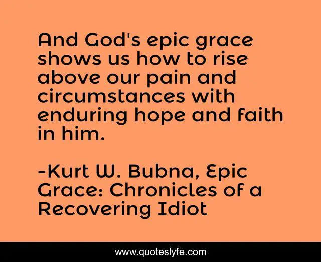 This page presents the quote "And God's epic grace shows us how to rise above our pain and circumstances with enduring hope and faith in him.". Author of this quote is Kurt W. Bubna, Epic Grace: Chronicles of a Recovering Idiot. This quote is about faith, christianity, grace, hope, god,.