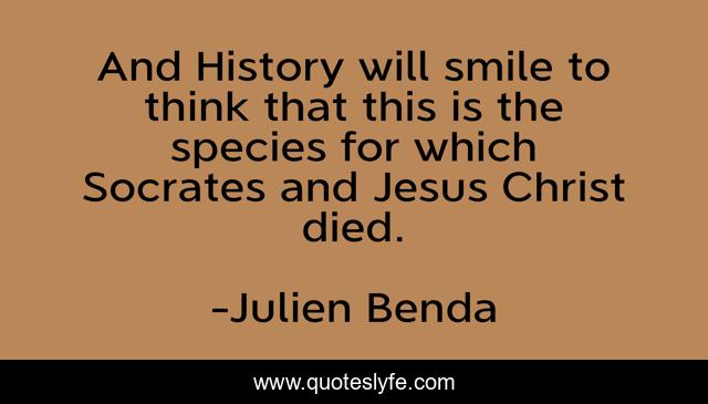This page presents the quote "And History will smile to think that this is the species for which Socrates and Jesus Christ died.". Author of this quote is Julien Benda. This quote is about think, history,.