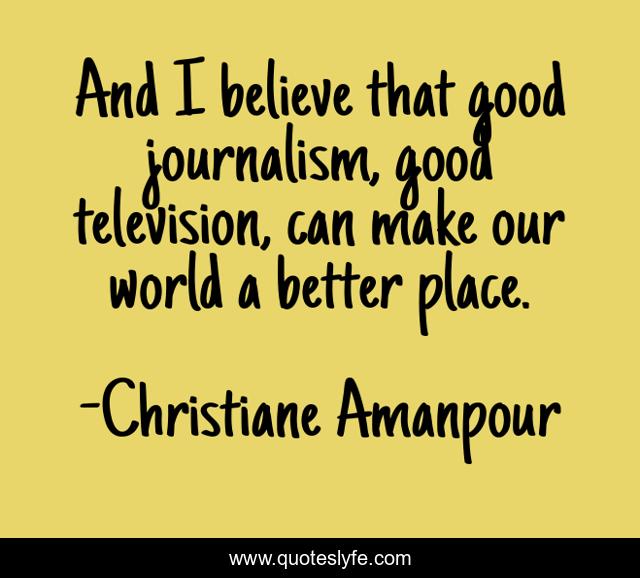 This page presents the quote "And I believe that good journalism, good television, can make our world a better place.". Author of this quote is Christiane Amanpour. This quote is about world, believe, journalism,.