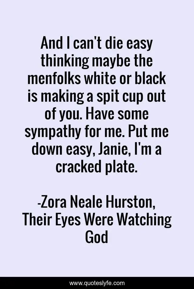 And I can't die easy thinking maybe the menfolks white or black is making a spit cup out of you. Have some sympathy for me. Put me down easy, Janie, I'm a cracked plate.