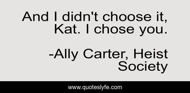 This page presents the quote "And I didn't choose it, Kat. I chose you.". Author of this quote is Ally Carter, Heist Society. This quote is about confession, love, happiness, affection,.