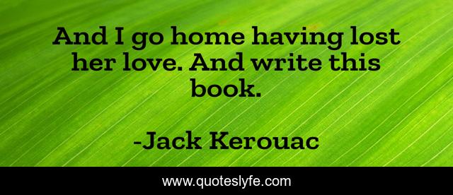 This page presents the quote "And I go home having lost her love. And write this book.". Author of this quote is Jack Kerouac. This quote is about book, lost-love,.