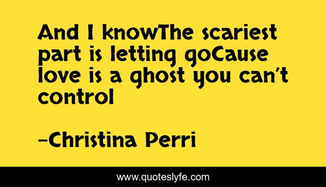 This page presents the quote "And I knowThe scariest part is letting goCause love is a ghost you can’t control". Author of this quote is Christina Perri. This quote is about music, the-words, christina-perri,.