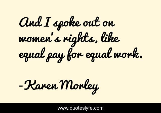 This page presents the quote "And I spoke out on women's rights, like equal pay for equal work.". Author of this quote is Karen Morley. This quote is about work, equal, rights,.