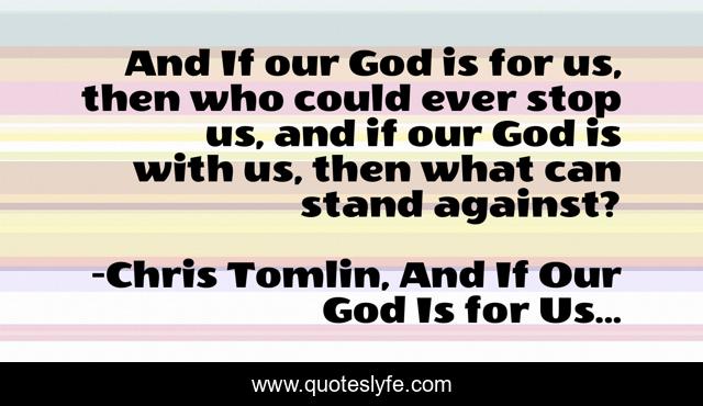This page presents the quote "And If our God is for us, then who could ever stop us, and if our God is with us, then what can stand against?". Author of this quote is Chris Tomlin, And If Our God Is for Us.... This quote is about enthusiasm, reminder, christian, inspirational,.
