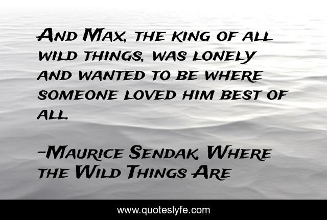 This page presents the quote "And Max, the king of all wild things, was lonely and wanted to be where someone loved him best of all.". Author of this quote is Maurice Sendak, Where the Wild Things Are. This quote is about love, affection,.