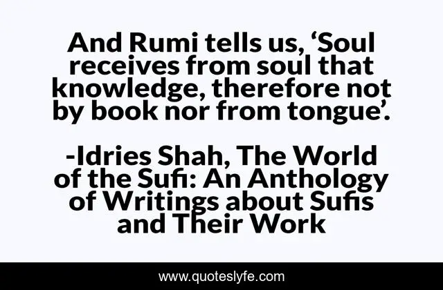 "Idries Shah, The World of the Sufi: An Anthology of Writings about Sufis and Their Work Quotes." Quoteslyfe.com, 2025. Tue. 09 Dec. 2025. <https://www.quoteslyfe.com/quote/And-Rumi-tells-us-Soul-receives-from-203373>.