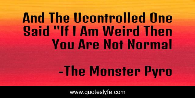 This page presents the quote "And The Ucontrolled One Said "If I Am Weird Then You Are Not Normal". Author of this quote is The Monster Pyro. .