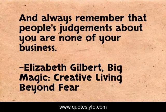 "Elizabeth Gilbert, Big Magic: Creative Living Beyond Fear Quotes." Quoteslyfe.com, 2025. Mon. 08 Dec. 2025. <https://www.quoteslyfe.com/quote/And-always-remember-that-people-s-judgements-172331>.