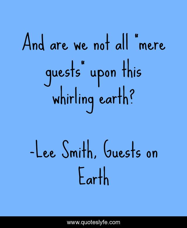 This page presents the quote "And are we not all “mere guests” upon this whirling earth?". Author of this quote is Lee Smith, Guests on Earth. .