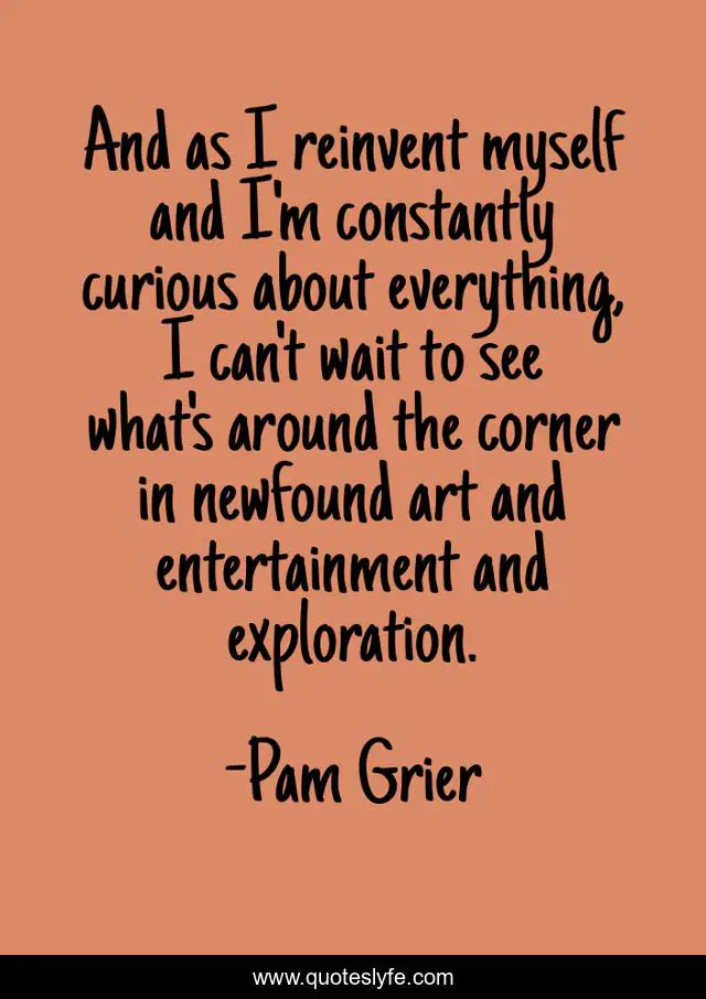 This page presents the quote "And as I reinvent myself and I'm constantly curious about everything, I can't wait to see what's around the corner in newfound art and entertainment and exploration.". Author of this quote is Pam Grier. This quote is about myself, see, entertainment,.