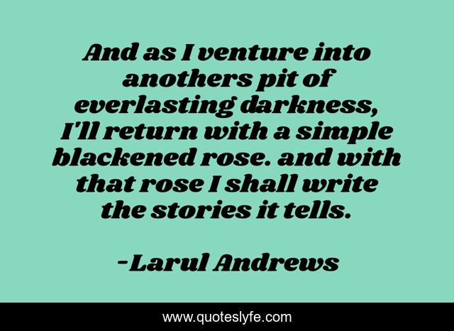 This page presents the quote "And as I venture into anothers pit of everlasting darkness, I'll return with a simple blackened rose. and with that rose I shall write the stories it tells.". Author of this quote is Larul Andrews. .