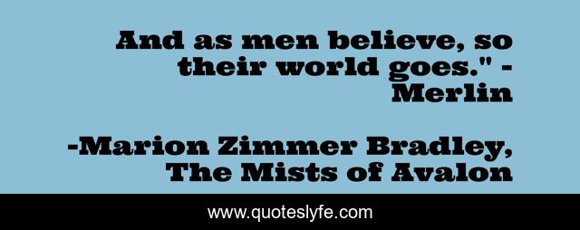 "Marion Zimmer Bradley, The Mists of Avalon Quotes." Quoteslyfe.com, 2025. Mon. 08 Dec. 2025. <https://www.quoteslyfe.com/quote/And-as-men-believe-so-their-world-89142>.
