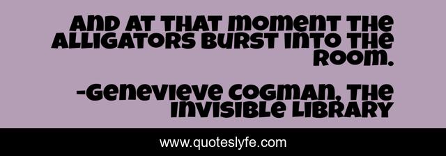 This page presents the quote "And at that moment the alligators burst into the room.". Author of this quote is Genevieve Cogman, The Invisible Library. This quote is about fantasy, humour, fiction,.