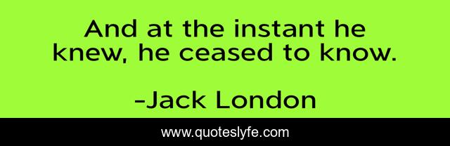 This page presents the quote "And at the instant he knew, he ceased to know.". Author of this quote is Jack London. This quote is about suicide, death-and-dying, realization,.
